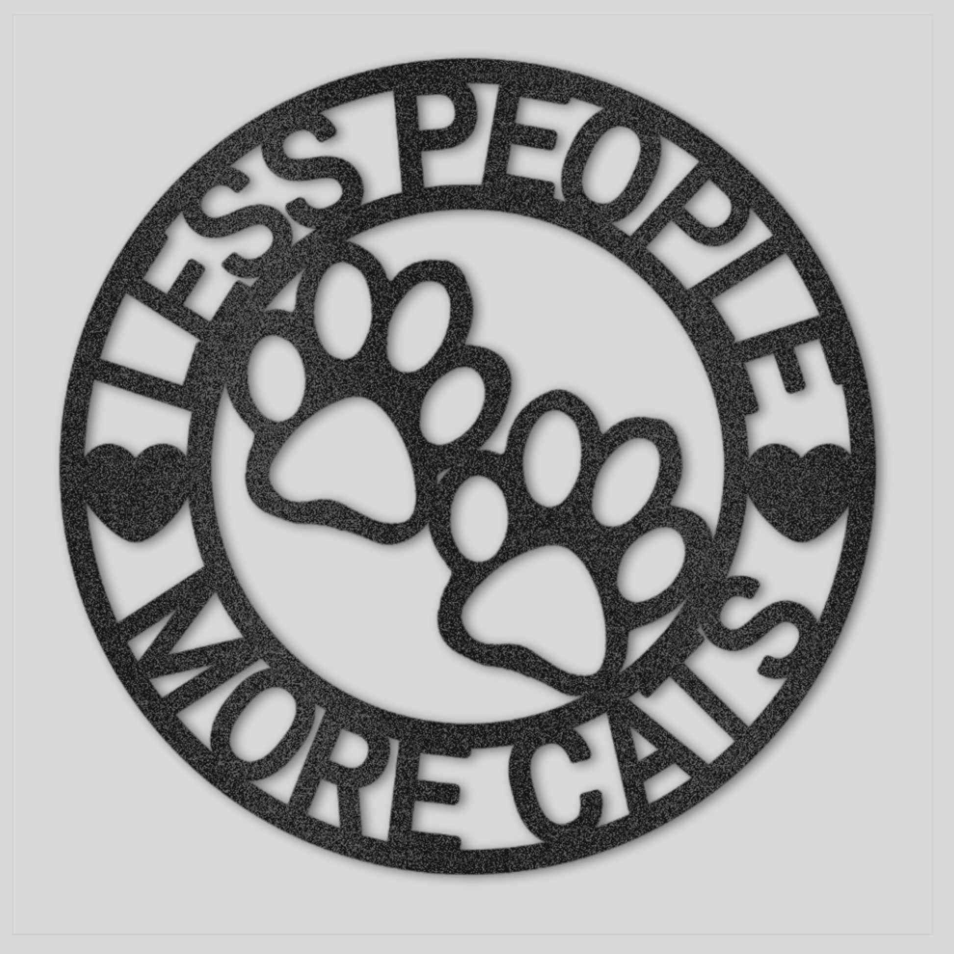Transform your space into a feline paradise with our Less People More Cats Steel Sign (without mounting holes). This durable, round sign is perfect for indoor or outdoor display and makes a purrfect gift for any pet owner. Embrace the joy and love our furry friends bring with this charming piece. Meow!